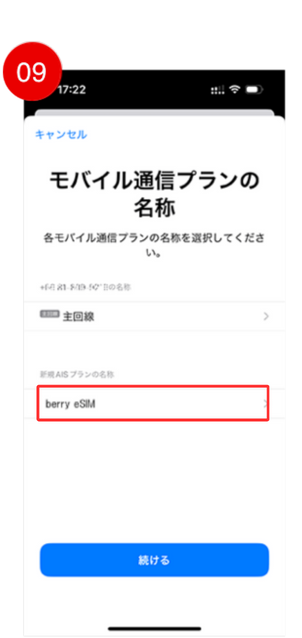 用途を選択して、カスタム名称は「berry eSIM」と入力しましょう。