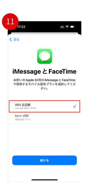 注)「続ける」を押下した時点でベリーeSIMがインストールされ、eSIMが対応ネットワークに接続され次第、ご利用期間のカウントが開始されます。