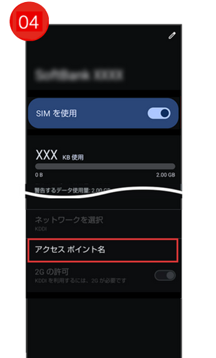 画面を下にスクロールいただき、「アクセスポイント名」を選択